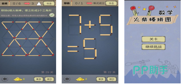 移动一根火柴是款很适合休闲健脑的火柴主题游戏,众多的解谜模式和火柴等式等玩家挑战,随着关卡深入大家面对的谜题会更困难,特殊的移动火柴解谜机制助力大家开拓脑力,每次智能移动一个火柴致使等式成立,特殊的交互理念和解谜模式体验感不错,一系列较为有难度的关卡足以强化朋友们智商。