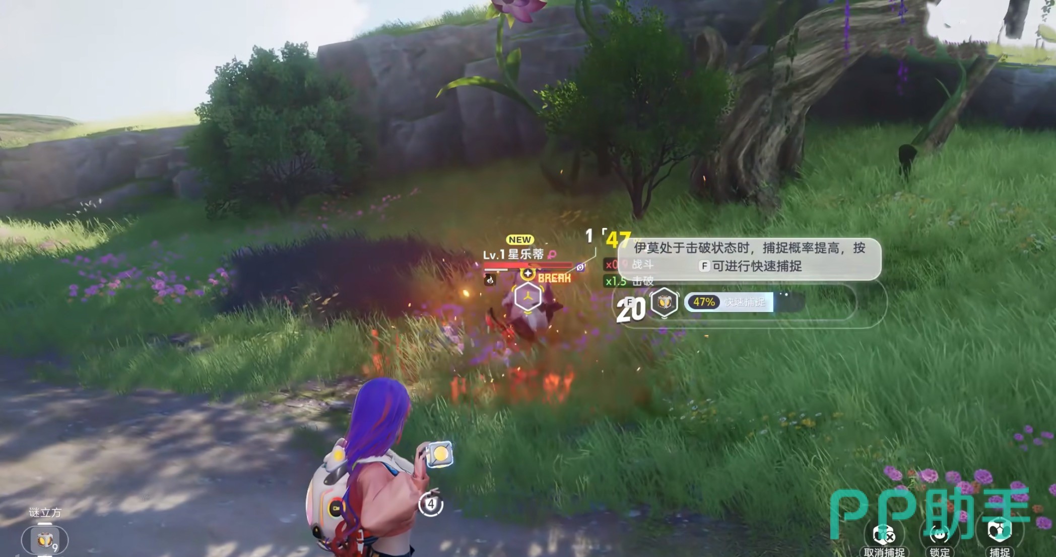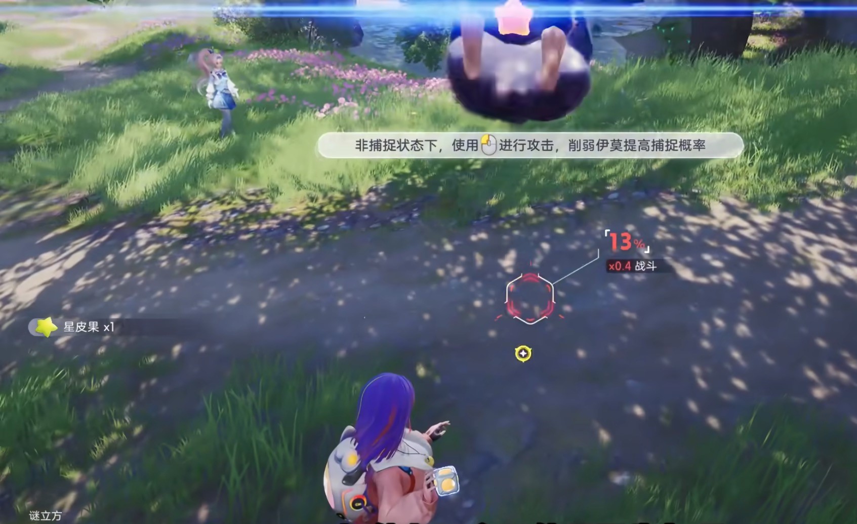 新手玩家可通过游戏初始教学快速掌握该技巧。例如,在首段野外引导流程中,系统会指引玩家对藏匿于岩石缝隙中的花芽蟹实施背袭操作,界面同步弹出明确提示:“使用背袭可提升捕捉成功率”,帮助玩家建立基础操作认知。