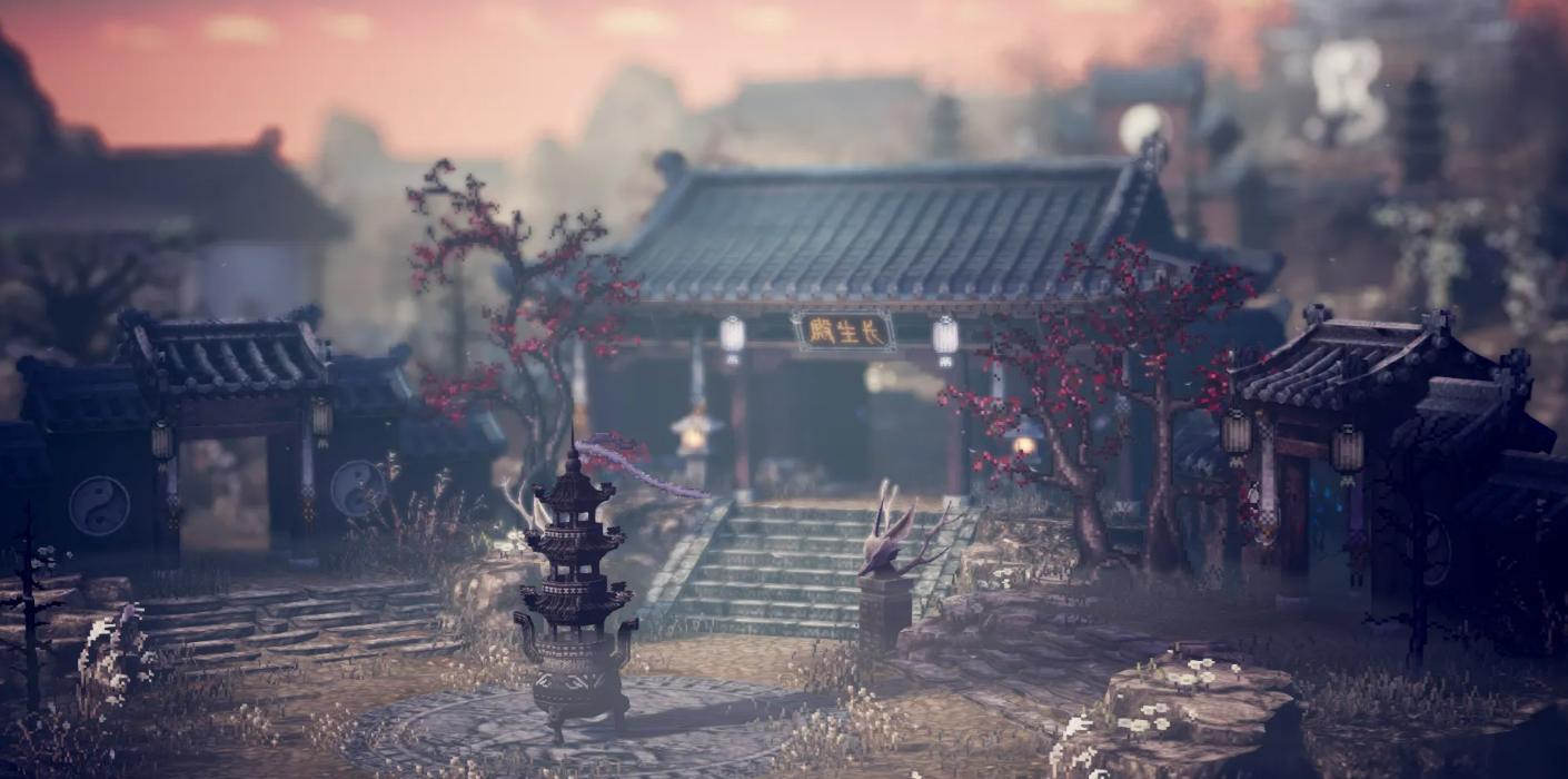 美术层面采用细腻手绘风像素表现,既致敬经典JRPG视觉语言,又通过光影层次与动态细节赋予复古画面全新生命力。世界观扎根于写实向武侠宇宙——故事始于关外辽城,玩家饰演一名出身平凡的少年,因一场突袭中毒濒死,幸得世外高人清虚真人施救,自此踏入波谲云诡的江湖长卷。