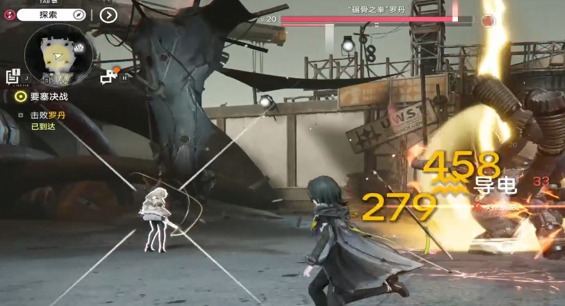 当罗丹生命值降至约66%(即剩余三分之二血量)时,战斗转入第二阶段。场地内将同步浮现多个带动态倒计时标记的红色区域,同时触发全图牵引气流,强制角色向Boss方向缓慢移动。此时需紧盯各红圈内进度标识——当标识抵达圆周临界点瞬间执行闪避,可完全规避爆炸伤害。紧随其后,罗丹将收回背部四根推进管并前置展开,管口由红色转为白色,进入3秒固定朝向火焰喷射前摇。该技能全程不可转向,且持续时间达4.5秒,推荐采用绕背战术:在喷火启动前切入其背面安全区,利用长手干员或远程单位进行全额输出。