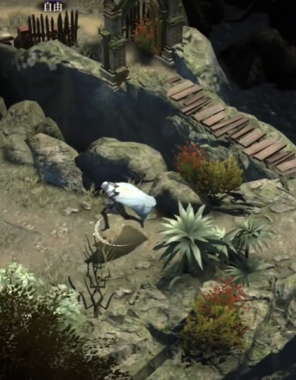 依据地图残页上的标记,下一步需前往地图右下角寻找墓碑。该墓碑坐落于一片矮灌木丛边,周围散落着数个木箱。与墓碑互动时会出现两个选项,“搜索”可获取基础材料资源,并可在碑文上发现一段隐秘文字,提示玩家需前往附近的塔楼解除某种咒语。塔楼位置在墓碑西北侧的小型高地之上,顶部悬挂着一个破损的铃铛。进入塔楼后需操作机关完成解咒流程,此过程要求角色具备足够高的魔力值。若当前魔力不达标,则需返回调整装备或提升等级。成功解咒后,塔顶铃铛会发出响声,同时一道淡蓝色光束自远处射出,明确指示祭坛方位。沿着蓝光行进数百米,即可抵达最终目标——烈风峡谷中的神秘祭坛。