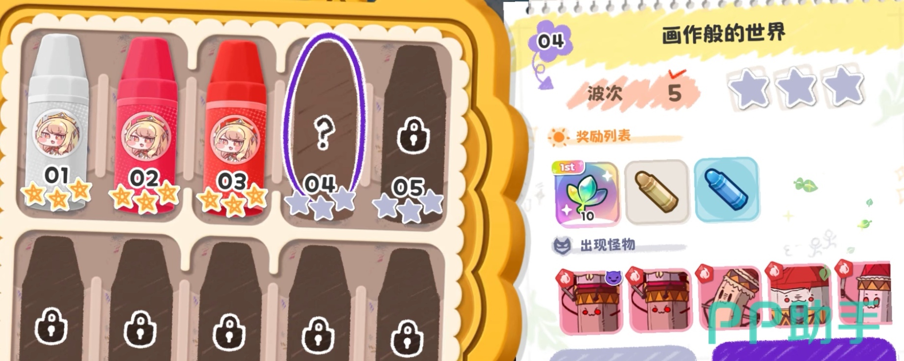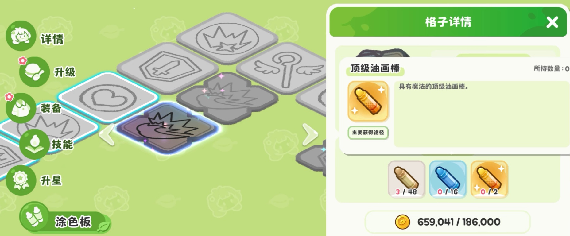 金蜡笔副本作为专属成长副本,需通关至第10关方可激活。该副本固定产出【做得好】代币,可用于兑换金色蜡笔、紫色蜡笔或星星糖。优先级推荐:金色蜡笔>紫色蜡笔>星星糖。若商店暂无紫色蜡笔,可暂选星星糖过渡。副本机制强调属性适配——建议优先用金色蜡笔扩充攻击力格子与血量格子,再根据Boss特性酌情强化暴伤格子与抗性格子,以实现输出与生存平衡。