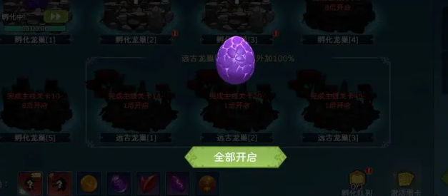 觉醒系统也是游戏中的一大亮点,当玩家顺利通关主线20-40关或者探险家等级达到8级时,便可开启觉醒系统,一旦龙觉醒成功,它将获得属性提升,并解锁威力惊人的新技能,不过唯有品质达到SSS+级别的龙才有资格觉醒,孵化系统同样不容忽视,探险的时候玩家必然会偶然发现珍贵的龙蛋,而如何处理这些龙蛋大家就要注意,孵化室一次仅能孵化一颗龙蛋,其余的龙蛋则会有序地进入孵化队列。