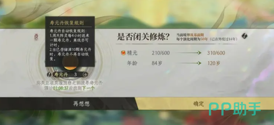 需要注意的是,每次闭关都会使角色年龄增长。一旦年龄超过当前寿元上限,将无法继续闭关。因此务必提前准备并使用寿元丹来扩展寿命上限,确保修炼进程不受阻碍。