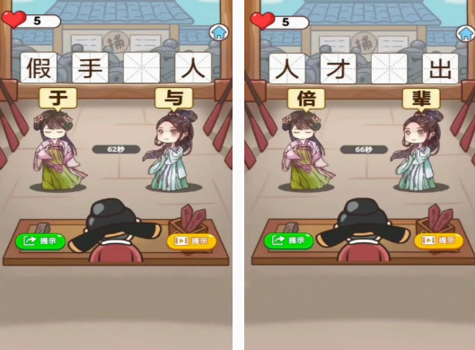 这是采用古风设计的猜字谜手游,既能帮助大家看到穿着古代服饰的可爱人物,同时在画面风格上也融入了古代的装修设计。以古代的各种成语为主,你在猜的过程中,会看到相应的文字,需要在缺少的文字中,把正确的填入其中,使成语成立就可以了。玩法非常的简单,游戏的难度由简直难,你只需要通过动动手指头,点击所显示的汉字,就可顺利完成猜谜。