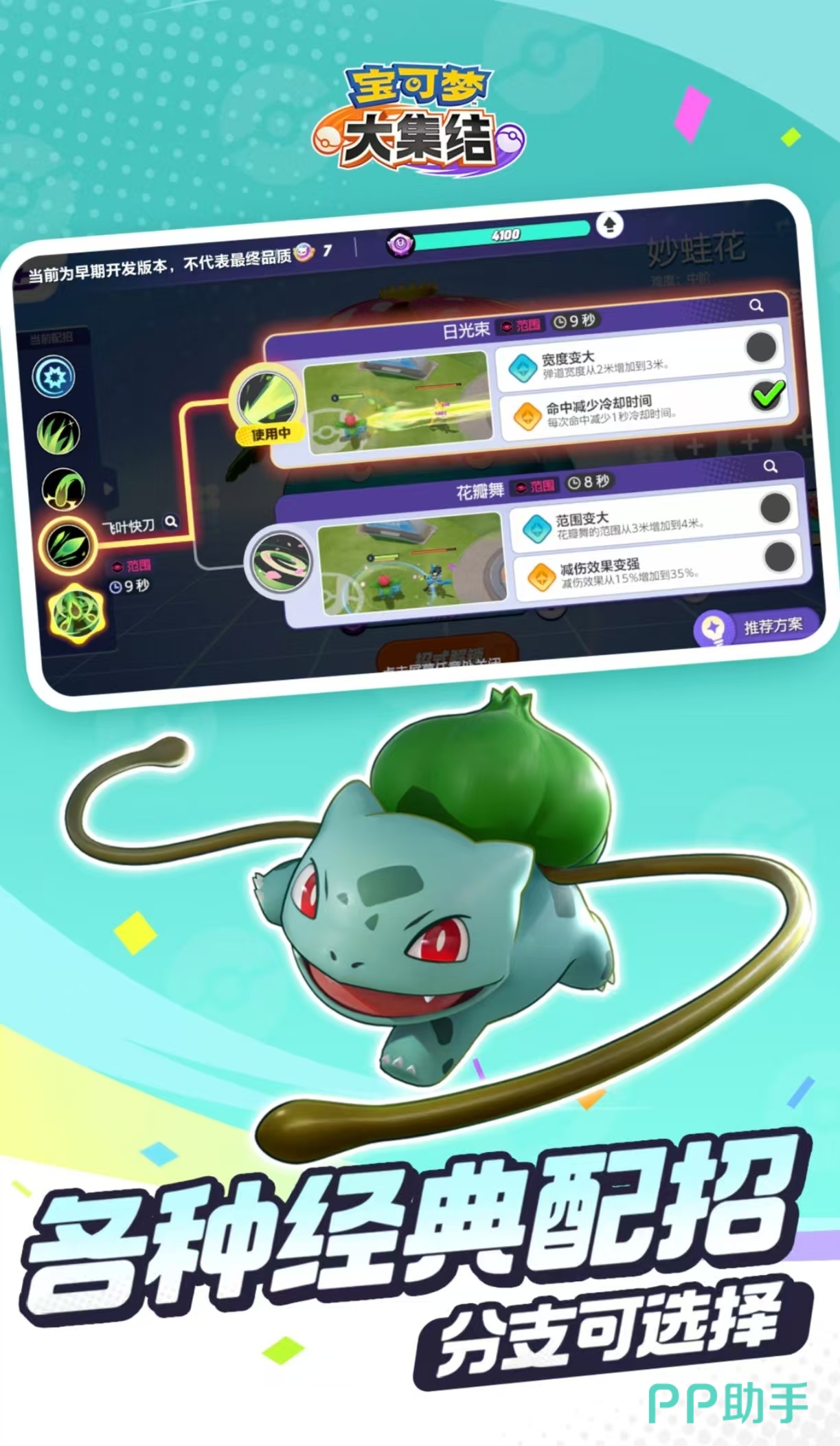 《宝可梦大集结》场景和角色拥有着日系的风格,玩家可以培养超多的精灵角色,精灵角色们拥有不同的元素和能力,需要玩家去训练他们才可以参加战斗。作战时会采用回合制的方式,精灵像战士一样的参加作战,需要组建特殊的宠物精灵战队。每次也可以切换阵容中的精灵,为他们搭配不同的技能,不断的为精灵提升各种指标,采用他们相克的关系进行作战。
