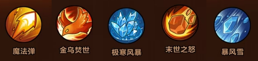 推荐配置:魔法弹 + 金乌焚世 + 极寒风暴 + 末世之怒 + 暴风雪
