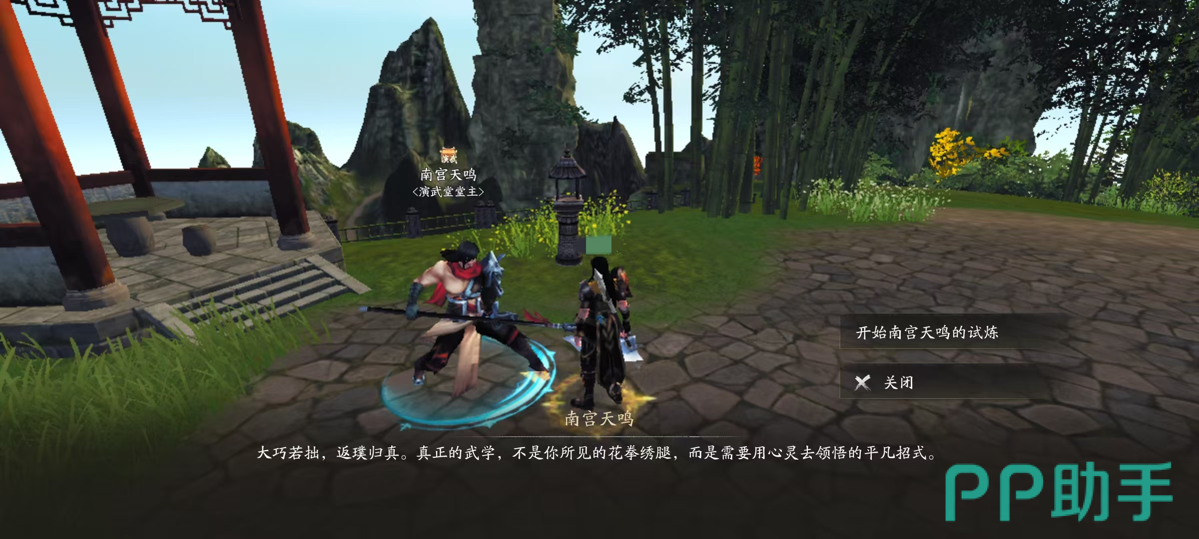 【大荒演武堂】每周限接30环,需组队前往南宫天鸣或念奴娇处接取首环,后续按提示依次寻访对应NPC并完成战斗。任务链式结构清晰,同样适配“自动战斗丹”,开启后可自动寻路、对话、战斗,大幅降低重复操作负担。