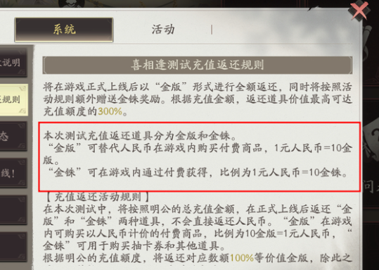 首先要清楚的是,此次返还不会以人民币形式进行,而是通过两种游戏内道具实现:金版和金铢。其中,金版的价值为1元等于10个,可用于正式服中购买所有标价为人民币的商品,例如月卡、各类礼包等,相当于将你的充值金额全额返还。而金铢则主要用于兑换抽卡券或特定游戏资源,目的是帮助玩家积累更多抽卡资本,提升后期体验。