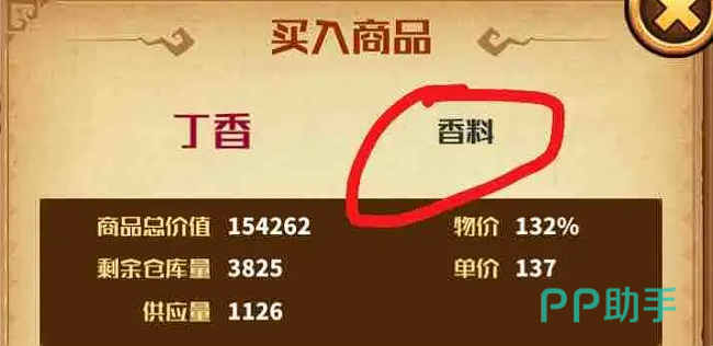 本作的买卖系统中每种商品都属于不同的品类,在买卖界面中可以找到所属物品类别。像是一些丁香、肉桂、豆蔻之类的香料会共享物价,通过少量买入可以提升港口该品类物价。而占领岛屿后的物价涨幅可以说是最为重要的跑商因素,它会影响到所有的物价,并能控制这个岛屿的产品出货量。