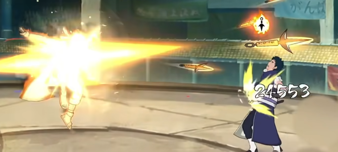 而1A的神速技能则是他最具特色的技能之一,水门通过使用飞雷神之术,能快速朝前方丢出飞雷神苦无,并通过这个物品实现瞬间移动。紧接着,他会迅速与飞雷神苦无交换位置,进行连续的位移攻击。这一技能让水门在战场上可以时刻保持机动性,敌人根本来不及反应,水门已经消失得无影无踪,再次现身时已然带来了致命一击。