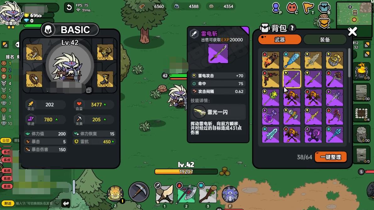 游戏采用开放世界框架,地图涵盖丛林、洞穴、海岸等多种地貌,玩家可自由选择发育路线。既可专注砍树挖矿、建造农田挂机升级,也能组队挑战动态刷新的世界Boss,争夺高星装备。独创的“死亡减益”机制平衡了风险与收益——阵亡后虽会损失部分装备,但背包物资得以保留,搭配天赋树系统与局外成长设定,让每局冒险都能积累长期收益。