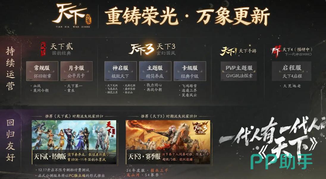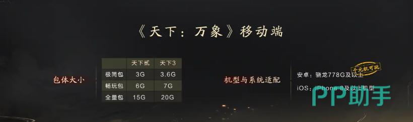 关于《天下万象》的手机配置要求说明至此。本作并非简单移植,而是对整个《天下》IP的一次系统性重构:角色数据、装备体系、帮派关系、经济系统等关键信息均实现三端互通(PC端《天下2》《天下3》与移动端《天下万象》),所有账号数据继承原有进度,确保老玩家零门槛回归,新玩家无障碍入坑。各版本持续独立运营,覆盖不同设备条件与操作习惯的多元用户群体。