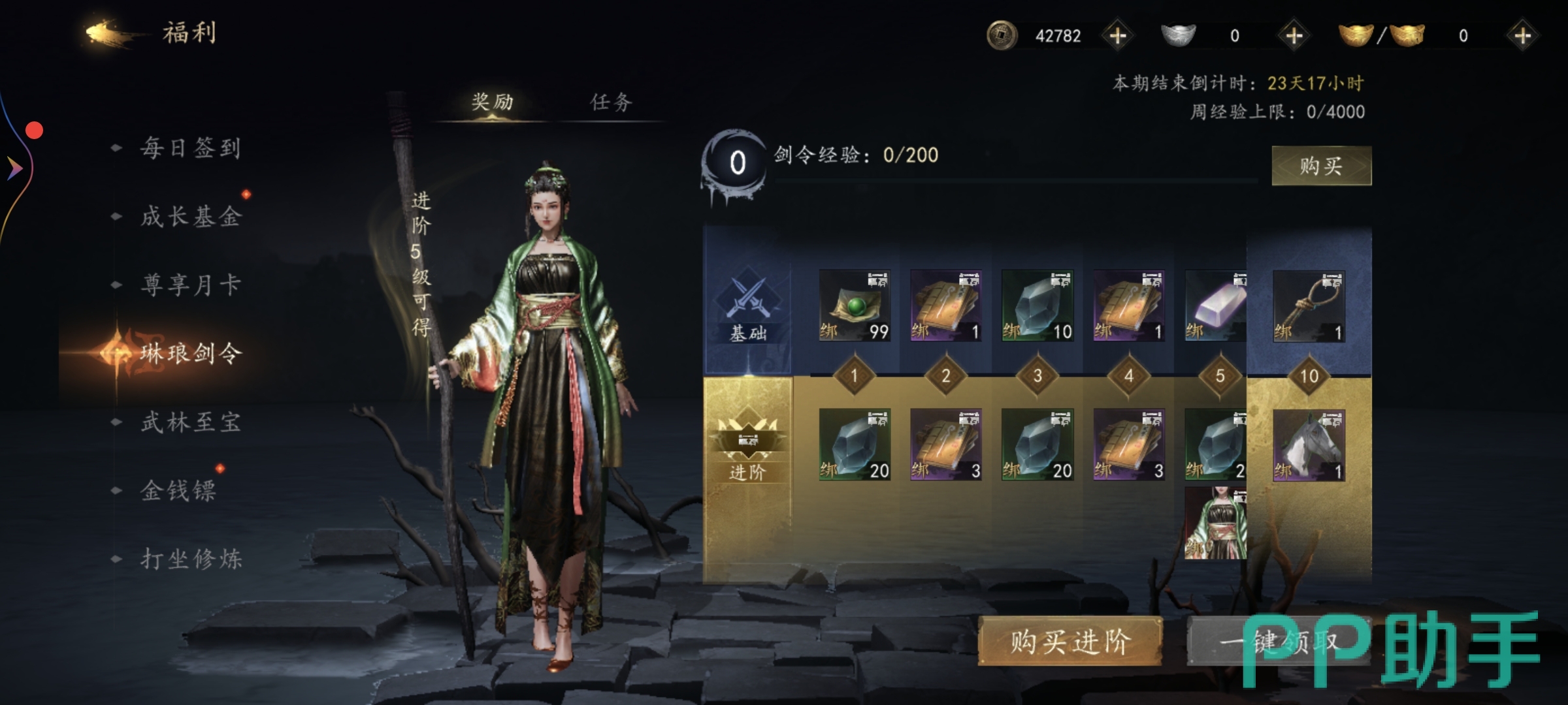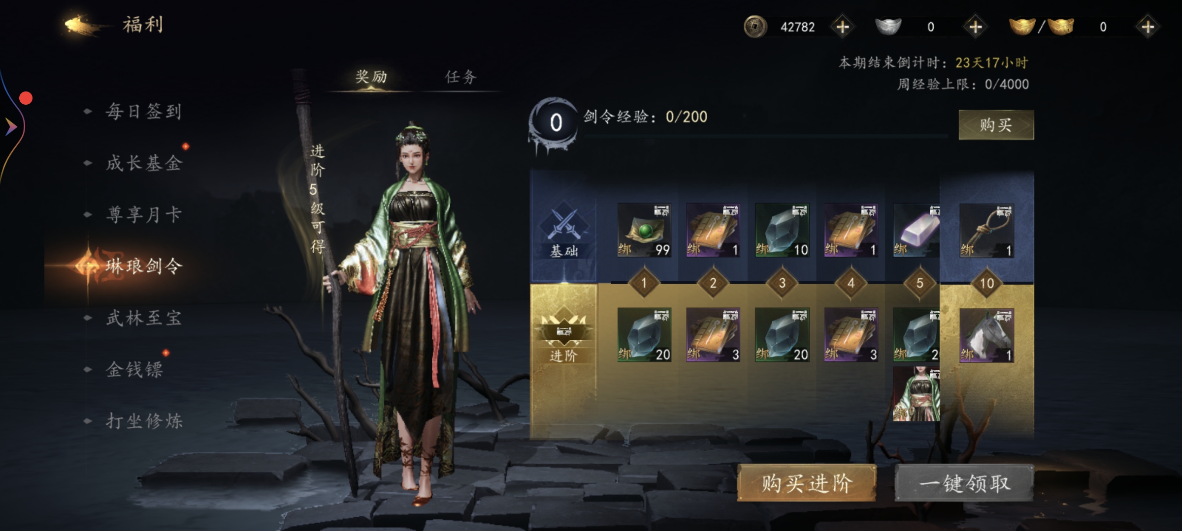 琳琅剑令是一次性可以把奖励领完的充值活动,这个活动可以一次性领取精美时装、强化石以及秘籍等物品。