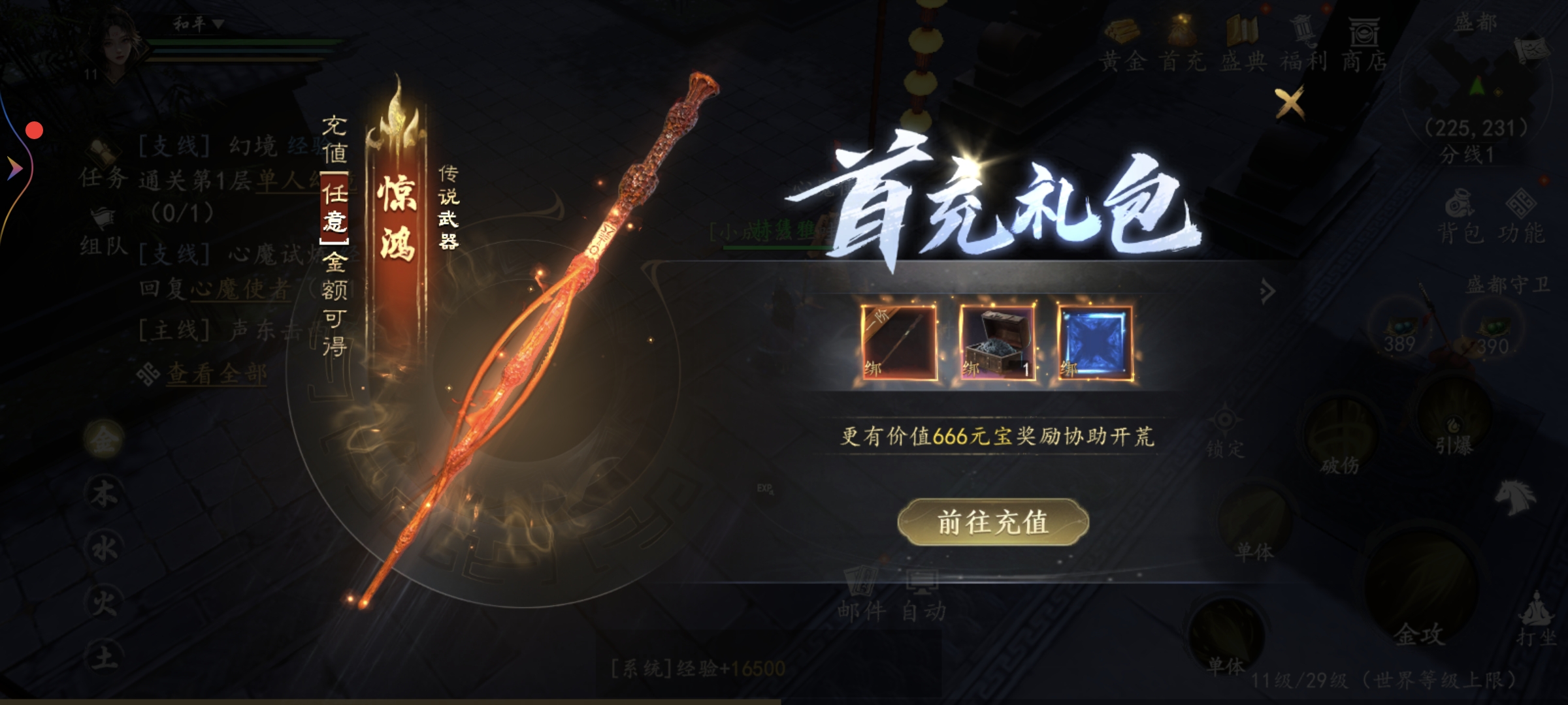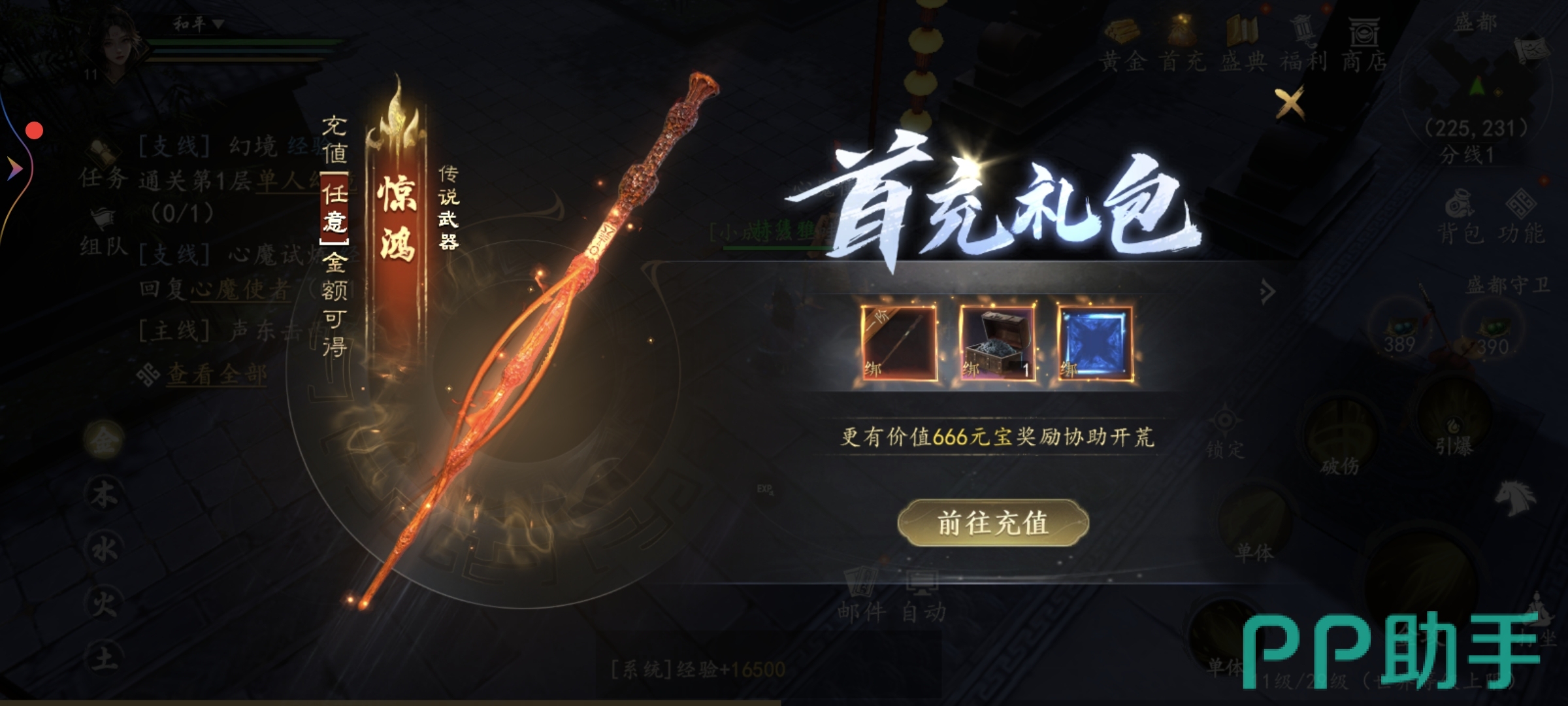 首冲就是玩家在游戏里面的第一次充值,只要进行了首冲就能获得游戏准备的神器奖励。