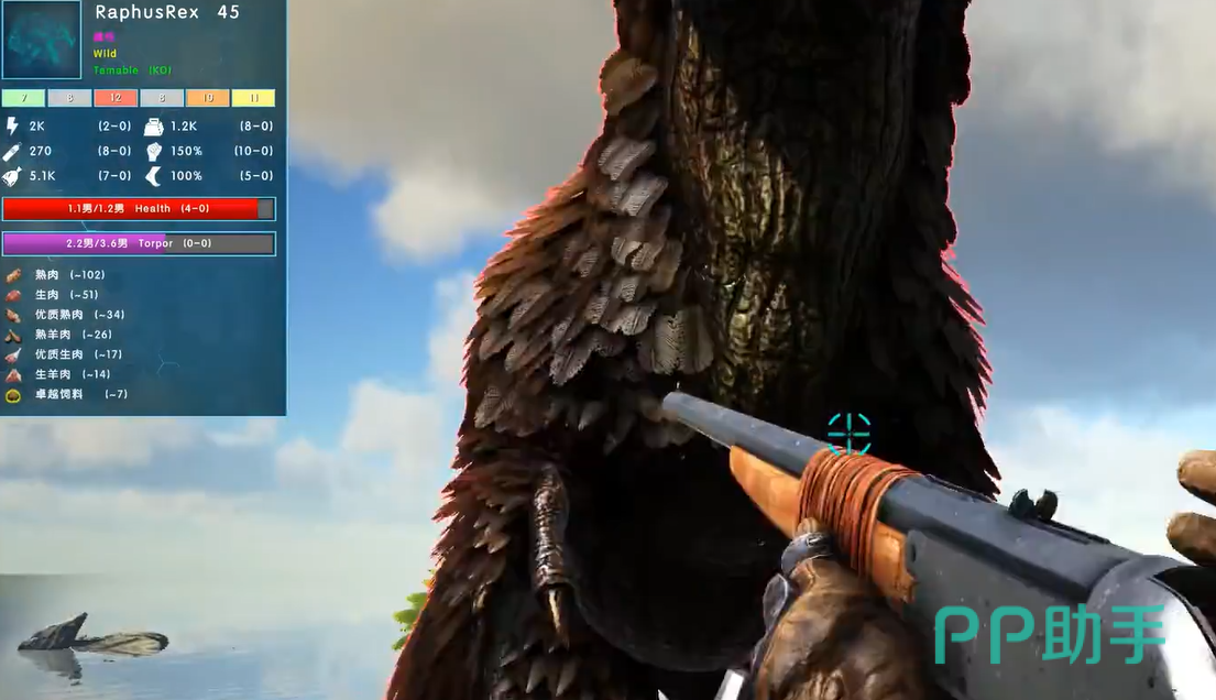 孤岛地图环境下,其移动速度为全生物最高梯队,陆地单位无法通过位移规避,部分高速飞行生物亦难以持续摆脱追击。驯服流程遵循标准击晕喂食逻辑:使用麻醉箭造成眩晕,期间投喂可食用饲料。其眩晕值低于预期,实际操作难度适中。值得注意的是,该生物具备全建筑摧毁能力,传统陷阱、围栏等限制结构对其无效,故必须采用空中压制策略——例如悬浮艇悬停控制后持续射击,以规避地面追击风险。