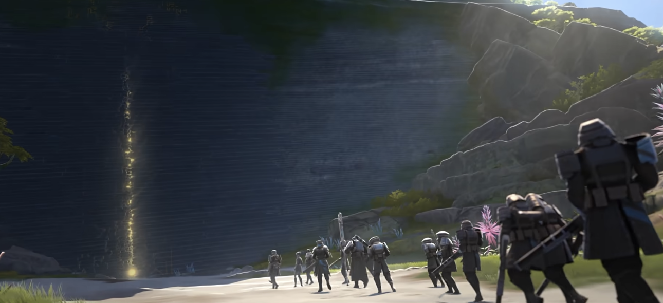 从已公开的PV内容可以看出,人类与隆舶的关系并非平等共生,而是被迫依存。台词中提到的达卡斯,正是一个典型的隆舶个体——它是一座活着的移动城镇,地面会蠕动,建筑仿佛会呼吸,整体弥漫着诡异而奇幻的气息。人类栖居其中,更像是寄生于庞然大物体内的微小生命。由此可见,在这个世界中,人类远非生态链顶端,反而处于底层位置。唯有依附于这些巨兽,才能延续文明火种。