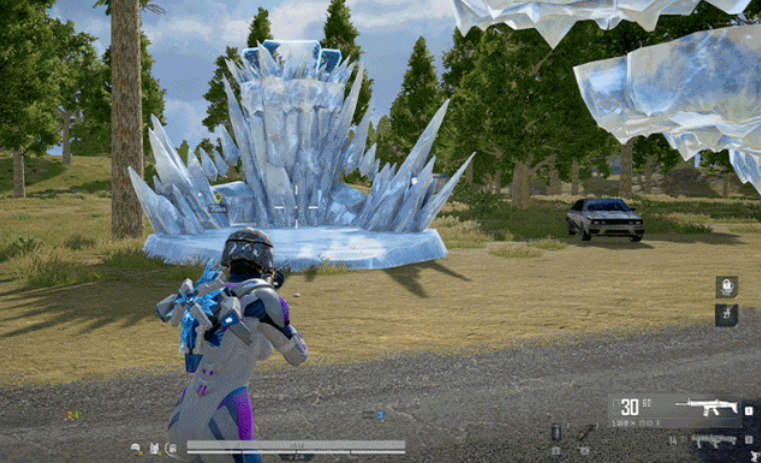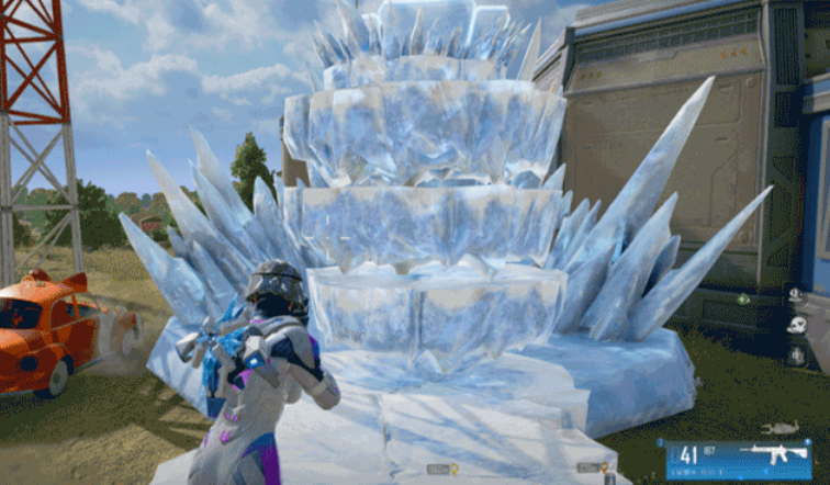 主动技能所形成的冰川掩体结合单向护盾设计,使她在正面交火中占据显著优势,既能有效抵挡敌方火力,又能安全输出。而大招“强袭雪球”不仅具备突进与控制效果,还可作为团队集体转移手段,替代传统载具使用。值得注意的是,倒地的队友也能被纳入雪球内进行快速撤离,避免被淘汰风险。