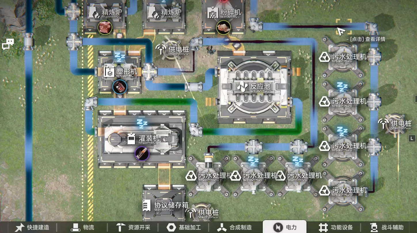 所有生产设备均依赖电力驱动,因此电力架构是整套系统运行的基础保障。核心协议装置作为供电中枢,其周围存在一个黄色覆盖范围,所有机械必须置于该区域内方可正常工作,否则将因断电停摆。初期推荐使用地热发电机满足能耗需求,但需注意避免将其安置于腐蚀区域,否则每小时将损耗耐久度,维修成本高昂且耗时。此外,总线取货口承担着电力传导的重要角色,建议布设于核心协议出口前端,以缩短输电距离,防止远端设备出现供电延迟或功率不足的情况。