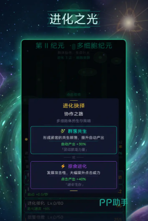 对零氪或微氪玩家友好,操作逻辑清晰直观,初次启动后约60秒即可掌握全部交互流程。美术风格采用低饱和度自然色调,界面呼吸感强,视觉节奏舒缓,有效缓解精神压力。游戏摒弃排名竞争、限时任务等高强度驱动设计,专注呈现从原始分子到跨星系文明的渐进式成长叙事。运营层面持续提供实用型兑换码支持,体现产品对用户实际体验的关注度。总体而言,《进化之光》是一款节奏从容、机制扎实、成长反馈明确的放置向进化模拟作品,适合偏好慢节奏沉浸体验的玩家群体。