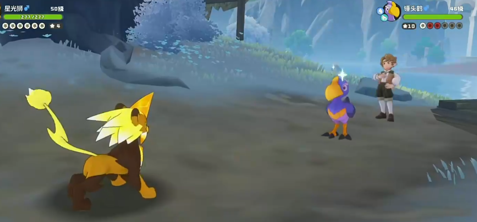 第三位对手为同时具备水系与翼系属性的锤头鹤,依旧处于电系克制范围内,继续由星光狮出招一次离子火花即可获胜。成功通过第一轮对战后,将自动进入第二阶段挑战。该阶段中,属性克制关系会带来双倍伤害加成,需格外注意阵容选择。