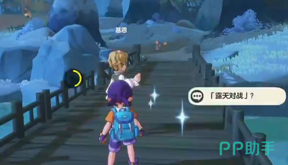 要找到基恩,建议先传送到甜水镇附近的魔力源点位。抵达后朝正前方行进,穿过沿途地形直至抵达咕噜咕噜潜滩。在此处会看到一座横跨水面的桥梁,基恩正位于桥面中央。接近并与之对话即可开启对战流程。