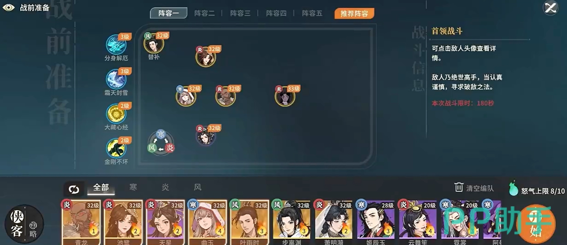 因此,使用青龙的关键策略在于精准衔接其技能轴线。推荐操作是在其血量降至70%左右时主动释放绝招,借此快速将生命压至50%以下,从而激活天赋无敌,实现输出与生存的双重叠加。若此时自动技充能已满,还可紧接开启第二段无敌,实现无缝衔接。这样的连贯操作能让青龙在长达十余秒的时间内处于完全免疫伤害的状态,同时享受绝招带来的极致增益。在阵容构建上,推荐搭配池鹭、天星、曲玉等角色,他们不仅能提供稳定的怒气支持,还能增强整体队伍的协同作战能力。