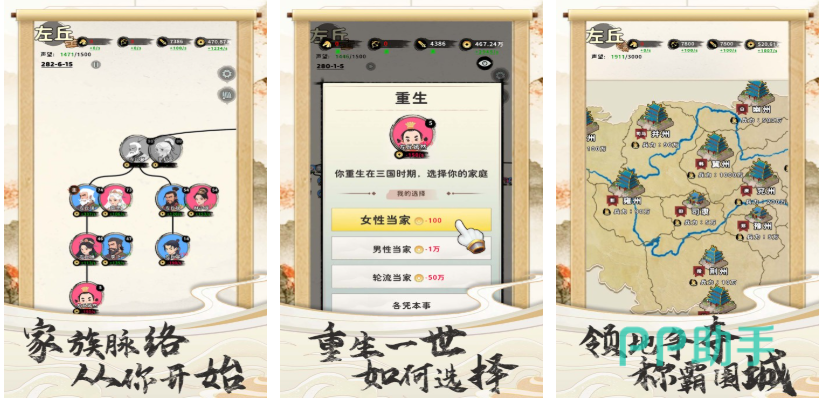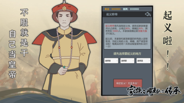 这是款结合了穿越剧、RPG和家族模拟等元素的手游,你将穿越到拟真的古代世界感受家族的崛起,物资交易和家族培养等新奇玩法应有尽有,自定义家族势力发展的游戏理念别具一格,甚至能够与其他的家族组合结盟一起发展,自己设定族谱的基础理念让家族游戏爱好者满意,只要拥有的人脉、势力够强大,甚至也可以自己做皇帝改写属于自己的历史。