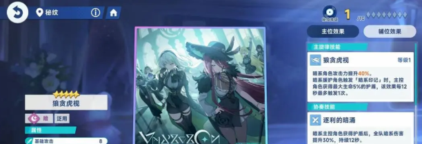秘纹系统构成了团队协作战斗的核心框架,队伍的整体强度很大程度上取决于秘纹的搭配逻辑。秘纹分为两类:主位与辅位,两者相辅相成才能最大化输出与生存能力。主位秘纹的作用在于激活特定技能,包括协奏技和主旋律技。以“狼贪虎视”为例,该秘纹可直接为所有暗系角色提供40%攻击力加成,无论其处于主控还是援护位置,都能显著提升整体输出效率。