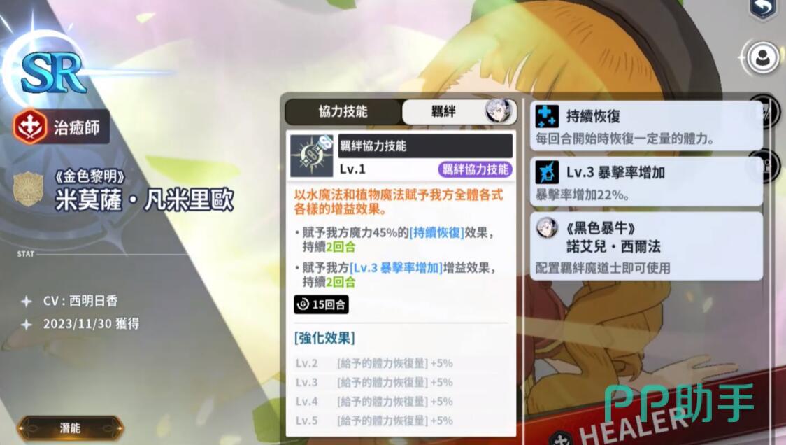 米莫萨是一位兼具治疗与复活功能的感知型辅助角色,拥有群体恢复与单体急救能力。在高难度副本或PVP对战中,他的复活技能往往能扭转局势,保障队伍的持续作战能力。由于其辅助性能极为全面,因此成为挑战极限内容时不可或缺的关键角色。