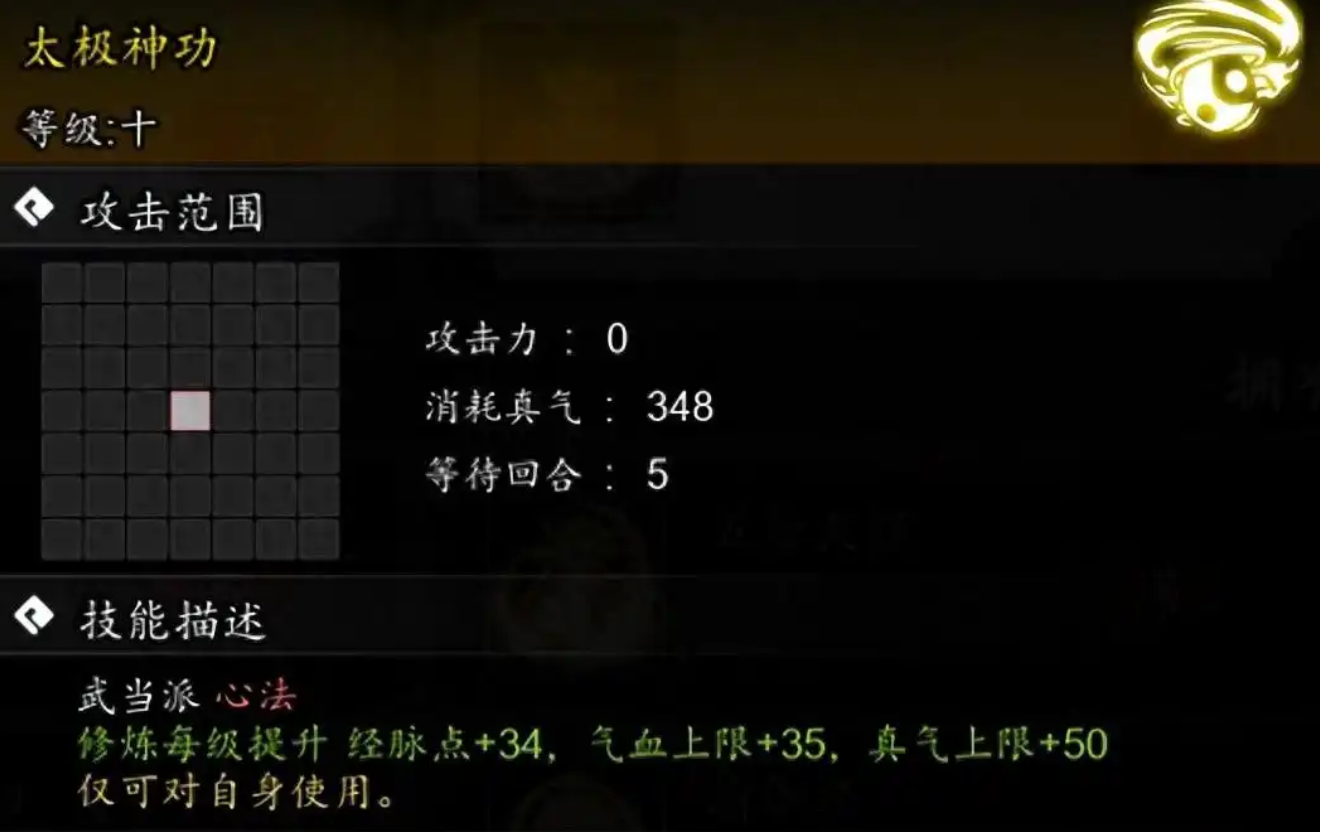 达摩武经需完成“佛生诸想”支线后,向涤罪僧求授。其核心机制为重置全部技能冷却,并施加“金刚不坏”护盾——每层可吸收一次任意类型伤害,最高叠加层数依技能等级而定。该效果在Boss战或连环突袭场景中具有决定性生存意义。“云相太极”则设定了明确的前置门槛:须将本门太极拳与太极剑两项武学均提升至10级方可解锁。生效后可移除三个负面状态,并赋予两层“归元”效果,该效果将在战斗结算时对敌方全体触发额外伤害,强化收尾压制力。