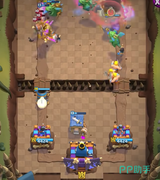 当然,除了防守方的挑战之外,还有进攻方的模式,这时你的目标很简单:摧毁敌人的国王塔。敌人的塔等级是15级,血量高达10000点,所以这场攻防战几乎没有任何侥幸可言。敌人会源源不断地派出骚扰兵力,而我们要做的就是用最强的卡组应对每一波的进攻,坚决守住我们的城池。
