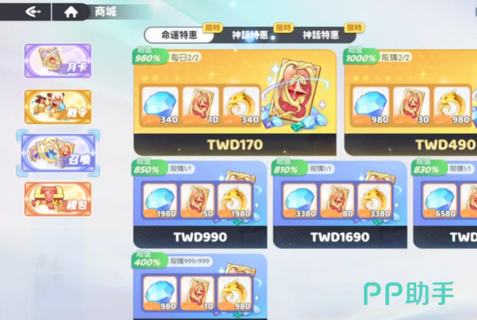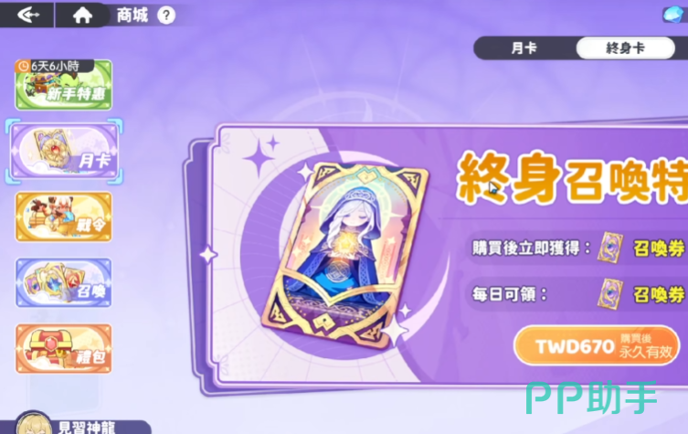 氪金玩家必然要进行首冲,首充6元可获得强力角色芬里尔,在刺客位强度极高,能一直用到中后期,升星成本低,可用同源4星狼人作为升星材料,开局玩家就可以拥有40级的芬里尔,配合游戏的自动托管和自动跳关功能,前期主线推图轻松许多,还能激活特权里的3倍速,大大加快推图节奏,召唤券限时礼包是游戏中最便宜的十连抽礼包,限时且仅有1次购买机会,购买后不仅能获得十连抽机会,若加上首充,累计充值12元还可激活永久卡,此后每天能免费领取1张召唤券,永久卡激活前会自动囤积天数,激活后可一次性领取之前囤积的召唤券。