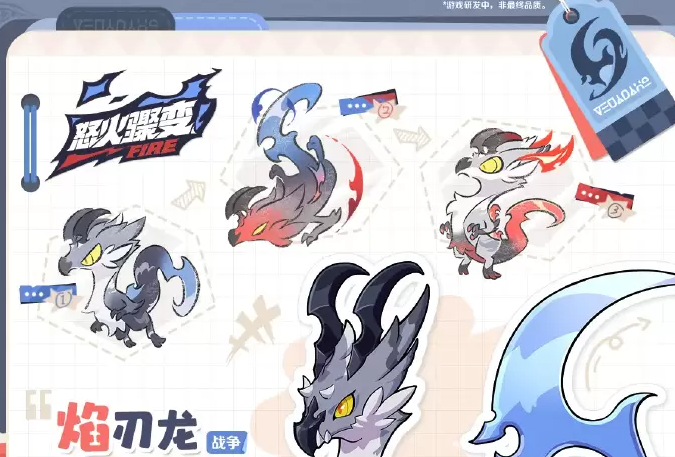 首先来看基础设定,焰刃龙的元理属性为战争,仅凭这一点就能判断出它在战斗体系中的定位非同一般。作为高爆发、强对抗的角色类型,它的存在本身就是一种威慑。最引人注目的莫过于“锋刃之尾”这一特征,在形态转换时可化作镰刀状武器,同时色调由蓝转红,象征着战意的彻底觉醒。这种动态变化不仅增强了角色的表现力,也赋予了技能释放更强的视觉冲击,令人印象深刻。