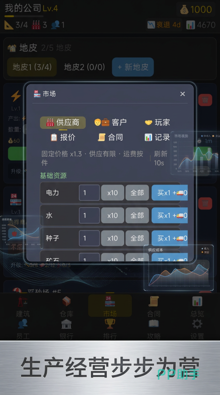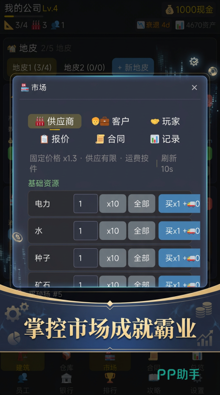 合同系统支持长期供货协议,每份合约具备法律效力约束力。经济环境高度拟真:每日利率浮动、行业政策调整、随机市场事件(如原材料价格突涨、竞品降价、公共卫生事件导致消费疲软)持续考验玩家的风险预判与应急响应能力。玩家可专注单一赛道打造垂直龙头,亦可跨行业多元配置分散风险——食品、服装、电子等不同产业均设有专属运营机制与成长路径。企业规模扩张后,将逐步开放跨境服务贸易权限,支持构建全球供应链网络,并借助区域价差实现套利经营。