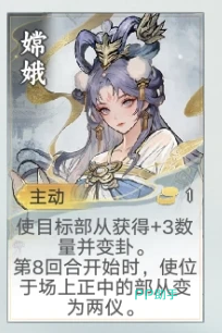 嫦娥承担卦象系统的动态调控职能。其机制围绕黑白二气与变卦规则展开,通过主动技能可为指定单位赋予三数量加成并完成卦象转换;自第8回合起,更可将场上所有己方单位统一转化为两仪形态。该能力有效解决卦象配置僵化与后期形态切换迟滞两大痛点,兼顾前期过渡稳定性与终局战术灵活性。