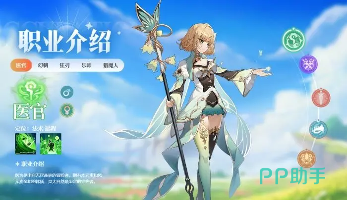 目前游戏中开放五大可选职业:医官、幻刺、乐师、猎魔人、狂刃,每个职业都拥有独特的定位与机制。首先来看医官,这是一个典型的治疗型角色,虽然单体输出能力较弱,在野外清怪效率偏低,但其团队辅助价值极高。在组队副本或大型团战中,医官是维持队伍续航的核心存在,上手门槛低,容错率高,非常适合初次接触此类玩法的新手玩家。