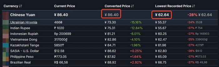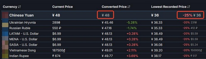 根据SteamDB及第三方价格监测平台记录,《纪念碑谷3》PC标准版国区定价为48元人民币,其历史最低成交价为36元;若叠加“笼中窥梦”DLC组成完整内容包,国区标价为86.4元,史低为62.64元;而全球各区域中,该捆绑包曾出现过55.73元的最低售价,为目前可查全平台最低纪录。