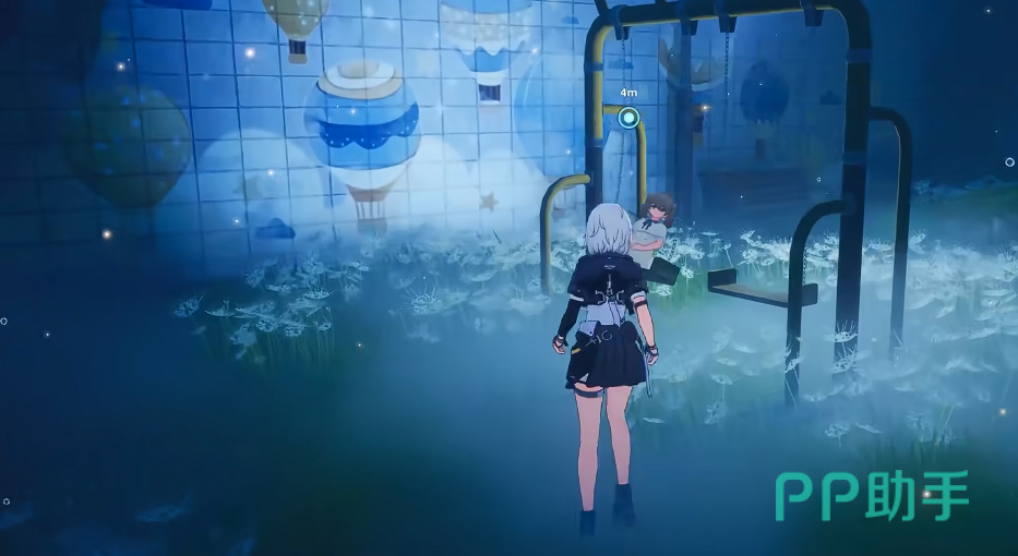 任务起始点位于异世界空间内——玩家需主动靠近一名正在荡秋千的小女孩并与其对话,即可正式接取“塞刀”支线。确认接受后,系统将自动传送至一处独立空间场景。该区域中央悬浮着一道无法交互的黑色人形剪影,此时任务目标明确:定位并触达该影子实体。