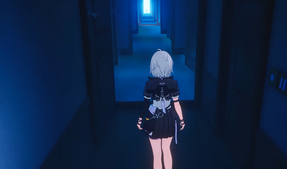 随后剧情推进至多门迷阵空间。此处排列着数道全开状态的异色门扉,路径呈线性延伸。行进过程中角色会受到持续重力压制,但保持向前移动即可逐步解除限制,最终实现加速奔跑。沿通道直行至尽头,推开最后一扇门,将进入碎片化记忆空间。