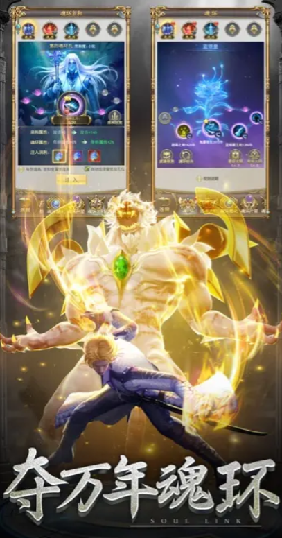 在此期间,玩家需要通过不断狩猎魂兽森林的方式,来取得更多的千年魂环以及千年魂骨,并且将它们注入到自己的武魂内,用于升级自身基础战斗力,游戏当中,默认玩家重生之后,是双生武魂。