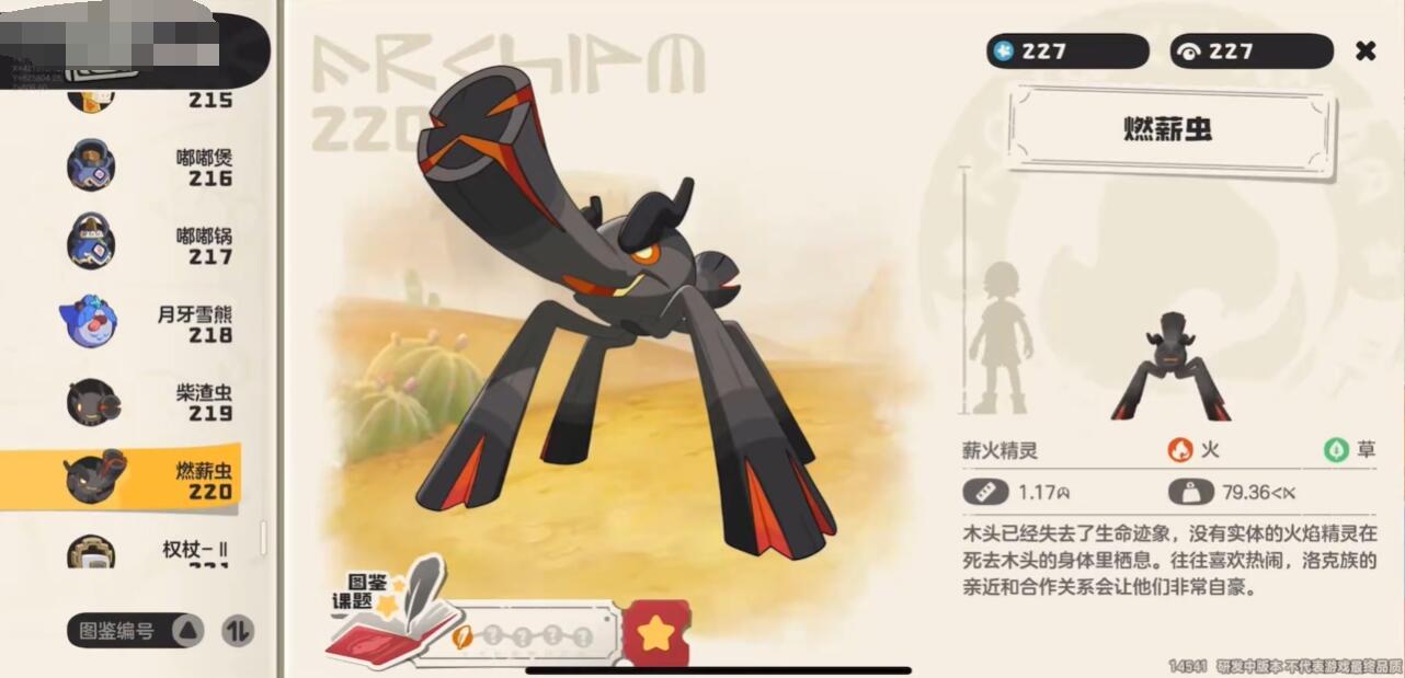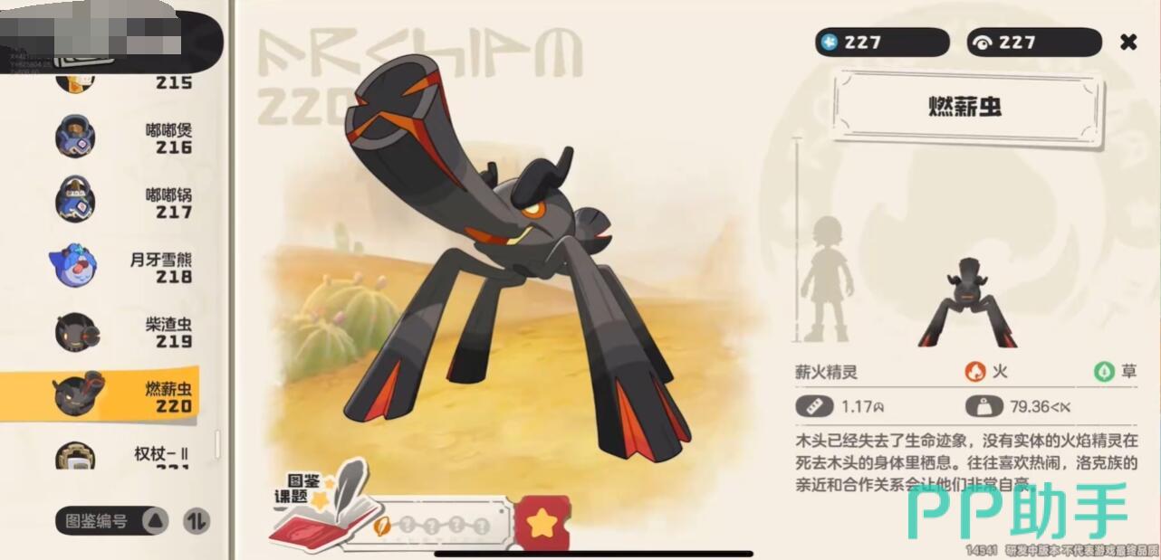 燃薪虫作为火系与草系双属性精灵,凭借独特的种族值分布与灼烧联动机制,成为中后期玩家探索输出的热门选择。今天小编就分享一期洛克王国世界燃薪虫种族值介绍。它其实是核心定位为灼烧流输出手,其种族值与技能搭配都非常不错。而且特性煤渣草能将火系技能与草系灼烧效果联动。