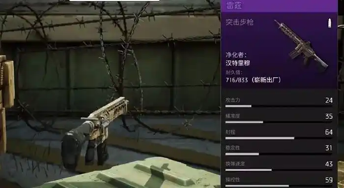 作为一款突击步枪,雷霆以其强大的火力输出在同类武器中脱颖而出。该枪拥有24点攻击力与高达64点的射程,配合43点的换弹速度和59点的操控性,使其在中远距离交火时具备显著优势。面对多数同类型枪械,雷霆都能形成有效压制,适合追求高伤害输出的玩家使用。