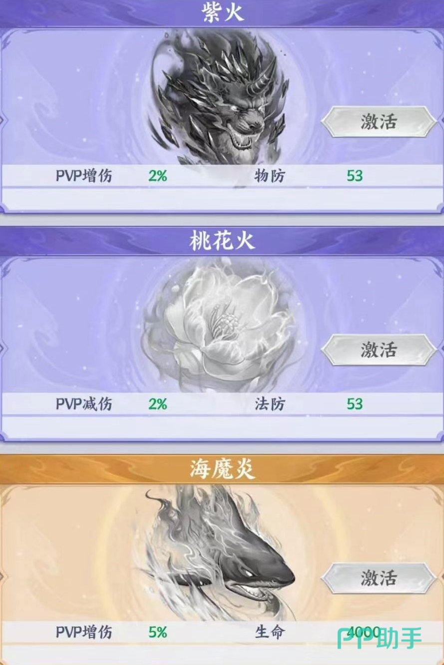 异火系统共分为三大成长维度:基础属性加成、羁绊协同增益与高阶技能联动。首次激活任意异火后,玩家立即获得基础战力提升;后续通过消耗化生火等指定材料,可逐级提升异火等级与星级,持续强化生命、攻击、防御等基础数值。