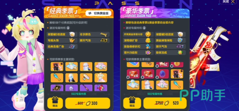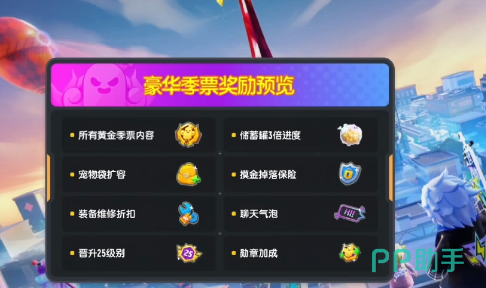 若难以抉择或希望全面获取所有奖励,豪华季票是最佳选择。它不仅包含经典季票与摸金季票的全部内容,还能额外领取专属豪华奖励,如更具设计感且附带动态特效的武器皮肤、独一无二的派对卡卡面等。同时,特权进一步强化:储蓄罐成长速度超过经典季票,宠物背包容量增加,勋章获取效率提升。此外,购买即赠送若干季票等级,帮助玩家快速推进至高阶奖励阶段,节省大量升级时间,适合追求高效体验的用户。