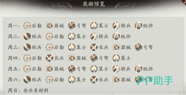 每日三极关卡提供的奖励极为丰厚,应列为优先完成目标。该关卡产出的冰系材料对后续兵种升级与技能解锁具有关键作用。兵器材料需按周期轮换获取,若当日未刷新所需类型,则无需消耗体力刷取。第一周主要掉落统帅与后勤类材料;第二周侧重后勤与骑兵;第三周为后勤及器械;第四周集中于长兵和弓弩;第五周则提供统帅与器械材料。尤其值得注意的是周日,当天可获取全部类型的材料,建议全力投入。