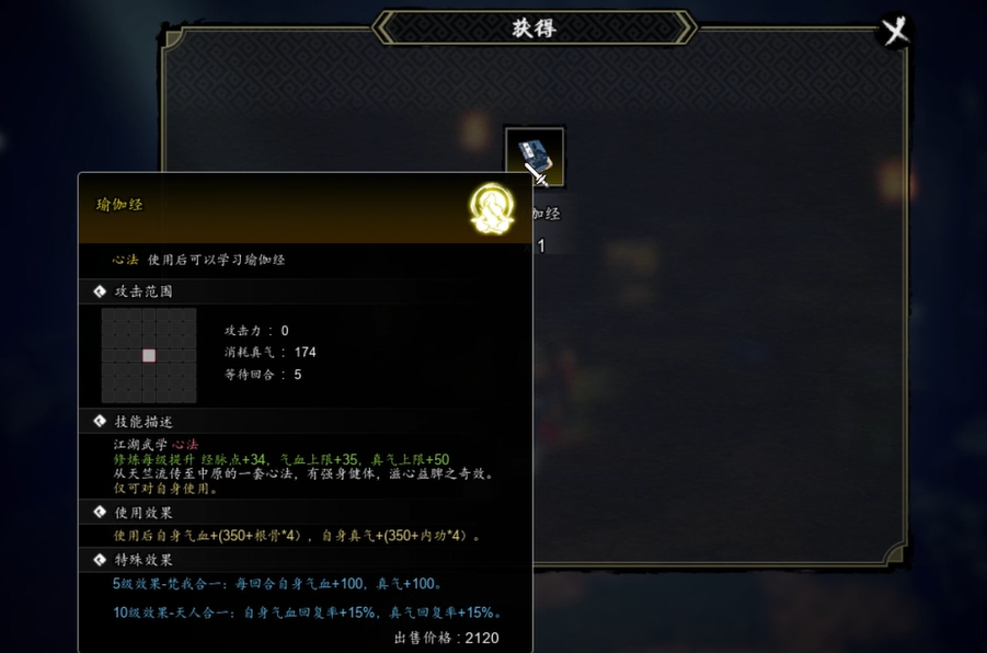 洞内空间有限,秘籍位置固定且醒目。搜索后即可拾取唯一道具——《瑜伽经》。该心法为游戏中稀有级被动增益类秘籍,生效后可同步提升角色攻击、防御、气血上限及内力恢复速率四项关键属性,显著增强中后期战斗容错率与续航能力。建议执行跳崖操作前手动保存进度,避免因意外中断导致重复培养成本。