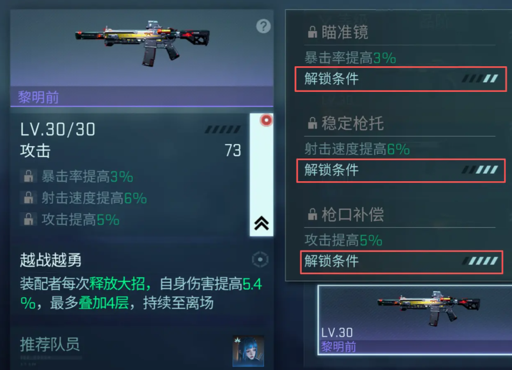 每位角色均配备专属武器,按稀有度分为SSR、SR、R三个等级,品阶越高,基础攻击力越强,并附带额外特效,如穿防、暴击率提升、攻速加快等。武器等级会随指挥官等级同步成长,达到上限后需进行突破处理,方可继续升级。每次突破不仅能提高等级上限,还会解锁新的配件槽位,增强整体作战能力。对于闲置不用的武器,可通过武器改装台进行回收,换取可用于培养的实用资源。