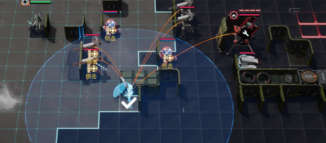 进入关卡后,系统会自动对全场进行扫描,战斗开始后单位将沿指定路线推进。只有当当前区域内的敌方目标全部被清除后,队伍才会继续向下一个点位移动。遭遇敌人时,可通过点击微型无人机查看其属性详情,提前预判威胁等级和应对方式。