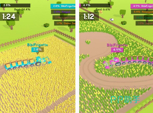 此游戏属于以收割农场当中的农作物为主要内容的,具有精美的画面以及简单的操作方式、只需要控制收割粮食的机器,完成粮食的收集。里面涵盖的农作物特别的丰富,在色彩搭配上也比较亮丽,需要你在游戏的规定时间内,尽可能地超越其他的对手,保证自己有很好的速度,收割更多的农作物,这样就能在大作战的过程中,击败更多的对手。